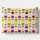 Scandinavian style flower illustrations in a colorful repeat pattern on a cream color background.