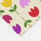 Scandinavian style flower illustrations in a colorful repeat pattern on a cream color background.