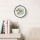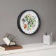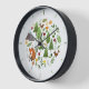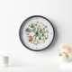 Scandinavian folk art style nature illustrations (woodland; fox, leaves, trees, flowers, mountains and birds) in a circular design, with clock surround. With clock surround.