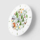 Scandinavian folk art style nature illustrations (woodland; fox, leaves, trees, flowers, mountains and birds) in a circular design, with clock surround. With clock surround.