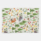 Scandinavian folk art style nature illustrations (woodland; fox, leaves, trees, flowers, mountains and birds) in a surface pattern design on a light cream color background.