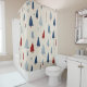 A cozy Scandinavian forest pattern shower curtain featuring hand-drawn trees in soft red, blue, and beige tones. This charming winter woodland design blends autumn warmth and Christmas cheer, perfect for seasonal projects and festive themes. Ideal for those who love modern rustic, minimalist, and cozy holiday styles.