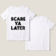 Keep it clean and creepy with this minimalist Halloween t-shirt featuring the bold phrase "Scare Ya Later" in crisp modern typography. Accented by a subtle ghost icon, this black and white design is perfect for those who love understated spooky styles with a modern twist.