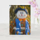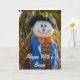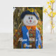 This happy scarecrow smiles at you from a sunny pumpkin patch, supported by a dry cornstalk. It has a white fabric face with eyes, nose and mouth drawn on and straw hair topped by a blue cloth hat sporting a yellow flower. It wears a blue and orange plaid shirt, with a blue vest and orange bow tie. I took this photo, a symbol of harvest and Halloween time, in a pick-your-own pumpkin patch in Puyallup, WA. Copyright Gail Storrs 2009.
