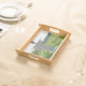 This is a well made, sturdy wooden tray with a flawless black finish and lovely map on the tray surface. It is both vintage & modern at the same time. Looks exactly like the photo; does not disappoint. So nice to find something of quality individually made and not the mass-produced 'shabby chic' merchandise seen in stores. I am so pleased to be able to give this to my college-age niece for her birthday. This can be used as a tray to hold jewelry or toiletries, or hung on the wall as art. The map surface is sealed (it is slightly shiny) so would be moisture resistant. It is well worth the asking price but I was able to apply a sale code as well. Very happy with my purchase. Map is crisp & clear and sealed with a water-resitant finish.