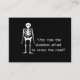 Like silly Halloween jokes? Here's a good one for you. White Skeleton against black background and white text asks: "Why was the skeleton afraid to cross the road?" And the answer is: "Because it had no guts."