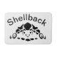 A scared turtle hidding in his shell. Illustrated from the front view in a black stencil style.