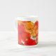 A bold, eye-catching bone china coffee mug, with a brilliantly colored all-over pattern of scarlet , deep red and burnt orange wallflowers from a watercolour design by Judy Adamson. Matching tea pot, pitchers and other mugs available in my store.