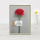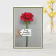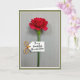 This design shows a single deep red flower centered on a slim green stem, set against a muted gray-green background with fine vertical lines that feel calm and intimate ❤️. The petals open gently with a soft, velvety look, like a quiet gesture meant for someone close. A small white tag hangs from the stem, adding a sweet note as if it’s been left for a dear friend or partner. On the tag, dark ink lettering sits neatly across the middle, easy to spot against the bright white space. A short loop of orange twine ties the tag in place, bringing a warm accent that echoes the flower’s rich tone 🌼. Soft, diffused light highlights the petal folds and keeps shadows light, giving the scene a tender, unhurried mood. The image is framed with a crisp white inner border and a wider, muted olive-green outer edge.