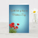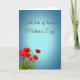 Designed with a soothing blue gradient background that shifts from deeper blue at the top to lighter aqua near the bottom, this Mother’s Day card feels calm and affectionate ❤️. Across the upper area, the message “With lots of love on Mother’s Day” is written in flowing golden-orange lettering with a soft shadow that helps it stand out. The warm color of the text adds a gentle, caring tone against the cool backdrop, like a quiet hug in visual form. In the lower-left corner, a cluster of red blossoms leans upward as if reaching toward the words, suggesting closeness and gratitude. The petals are wide and delicate with dark, detailed centers, and the blooms sit on slender bright-green stems with leafy sprigs and a few unopened buds 🌼. Soft, even lighting keeps everything smooth and tender, without harsh contrast. The red flowers and green stems create a strong pop of color against the blue field, and the blooms are anchored in the lower-left quadrant with several buds pointing diagonally toward the center.