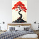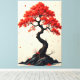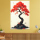 A scarlet tree with intricate branches and vibrant red leaves, bringing an artistic touch to a serene landscape.