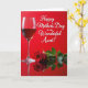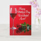 Designed with a deep red palette, the scene pairs a tall stemmed glass half-filled with dark crimson liquid on the left with a single red rose resting to the right, as if set down for someone special ❤️. The glass catches soft highlights along its rim and bowl, and the rose’s layered petals look velvety, with a green stem and a few leaves adding a quiet contrast. Both objects sit on a glossy surface that reflects them clearly, creating a close, intimate “two of us” feel without showing any people. Behind them, the background fades through a smooth red gradient, moving from brighter scarlet to a darker wine tone near the edges. In the upper right, a short message appears in flowing white lettering, positioned with plenty of open space around it so it feels gentle rather than loud. The lighting is low and warm, emphasizing the curve of the glass and the soft edges of the petals, like a candlelit moment shared between friends or lovers 🌼. The rose and glass reflections stretch slightly downward on the shiny surface, crisp at the base and softer as they fade.