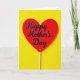 This card features a glossy scarlet heart-shaped sign centered on a wide daffodil-yellow background, creating a bright contrast that feels like an affectionate gesture ❤️. The view is straight from above, keeping the scene simple and focused on the heart as the main symbol of closeness. A slim, pale wooden stick extends from the bottom of the heart, adding a gentle, natural touch that softens the strong colors. Across the heart, raised matte-black lettering sits neatly in the middle, standing out clearly against the red surface. The letters catch soft light and cast small shadows, giving the message texture and a quiet sense of intimacy, like words meant for one special person. The smooth shine of the heart and the subtle grain of the stick work together to suggest warmth and friendly devotion without adding extra objects 🌼. The background remains a solid, uninterrupted yellow field with no other elements, so all attention stays on the heart and its centered black text. The heart’s edges look crisp and rounded, with the stick aligned slightly off-center beneath it.