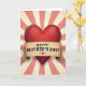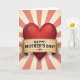 This design shows a large scarlet heart at the center, shaded to look rounded and glossy, like it’s catching a soft light ❤️. A parchment-toned ribbon stretches across the middle of the heart, with gently frayed edges that add a tender, old-fashioned touch. The main message sits on the ribbon in dark red serif lettering, centered and easy to read, with small decorative curls near the ends. A tiny red heart appears as an accent near the text, like a quiet nod to closeness between two people. Behind the heart, a sunburst background spreads outward in alternating rays of creamy beige and muted rose, giving the scene a cozy, nostalgic feel 🌼. The contrast between the deep reds and the softer pastels makes the heart feel like it’s leaning forward, as if offering a warm, affectionate gesture. Subtle color gradients deepen the heart’s 3D look, and the rays stay evenly spaced as they radiate to the edges of the card.