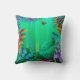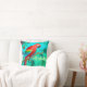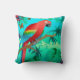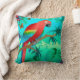 An original illustration by Kathy Konkle of a scarlet macaw in the Amazon rainforest. The pillow has butterflies in the rainforest printed on the back.