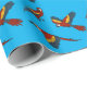 Features scarlet macaws, these exotic birds are perfect for people that like tropical birds and animals. These rainforest scarlet macaws are a type of parrot. With a sky blue background.