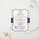Cute, elegant bridal shower design on nautical colors Scarlet red, Navy blue, Eggshell off white Stripes pattern with navy blue font. Personalized with bride's name! Our store, Favors and Decor, specializes in event decorations, party favors, and invitations!