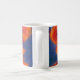 White mug decorated with scarlet poppies on a blue background