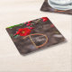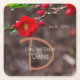 A beautiful floral wedding disposable coasters that matches the Scarlet Top Wedding Invitations and other wedding supplies. This features some red blooms from a Double Take Flowering Quince bush towards the top of the image. They look a lot like a camellia. During the spring they bloom these beautiful double flowers. Click personalize to edit with your information.