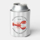 Personalized Scarlett Red Lobster-themed food can coolers for your next Lobster Bake Party or seafood event. It features a watercolor-styled illustration of a bright red lobster. Surrounding this are spots for your unique event information.