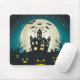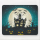 Scary Blue and Black Haunted House Halloween Mouse Pad