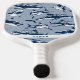 This fun pickleball paddle features pattern of sharks in navy blue over a slate blue background (background color can be customized, if desired). The back contains the same design as the front, and a text template is included for personalization, making this a great gift for any shark lover!