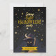 Bring elegance and mystery to your Halloween celebration with this chic black cat party invitation. A sleek black cat in a witch’s hat perches beneath golden stars and a glowing crescent moon, creating a blend of gothic charm and celestial style. Perfect for adult gatherings, cocktail nights, or costume soirées that call for upscale Halloween vibes. Cat lovers will adore the witchy feline touch, while guests will be enchanted by the modern, magical design. Personalize the back with your RSVP details, event info, or dress code for a night of stylishly spooky fun.