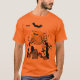 Scary graveyard with old scary trees, headstones and bats with a big orange moon - deck yourself out on October 31st, on Halloween shirt