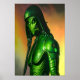 A green scary alien in green armor and helmet. This is a AI generated art.