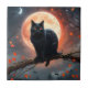 Scary Halloween Black Cat Moonlight, Ceramic Tile