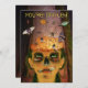This unique, spooky Halloween party invitation has a zombie girl on it, standing in a dark forest, her eyes staring up at her brain. Worms, flies, spiders, moths, beetles and butterflies land on her and float around her head. These creepy, strange invites are perfect for an adult haunted house party. Use the easy templates to add your text to the back. PLEASE NOTE: The words "You're Invited," "Halloween," and "RSVP" are design elements instead of editable text. However, you can delete them or move / resize them separately under "customize / personalize further." Celebrate Halloween with these scary invitations.