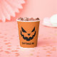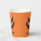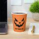 This spooky orange Halloween paper cup features a cool smiling Jack O Lantern and your own personalized text. Cute and scary custom party decor.