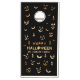 Spooky Halloween pumpkin carving jack o lantern pumpkin faces cornhole set. Our design features different glowing scary pumpkin carving faces peeking through the darkness. Bats and waxed candles add to the scary Halloween design. All illustrations contained in this spooky Halloween pumpkin carving cornhole set are hand-drawn original artwork by Moodthology. Perfect addition to any Halloween party.