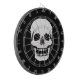 This design is based on a pirate flag that features an image of a laughing skull, symbolizing mortality. Edward Teach, better known as Blackbeard, is said to have flown a black flag with a skull in the middle.