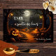 Placemat featuring a scary scene with pumpkins and and a full moon in a cold forest. Beautiful for an autumn celebration like Halloween.