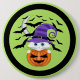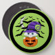 Halloween Scary Pumpkin with a White Kitty and Witches Hat button