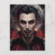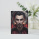 Send a chill down someone's spine with this postcard featuring a scary and handsome vampire. Let your imagination run wild as you gaze into his eyes, with a haunting moon and castle in the background. This piece is sure to make your recipient's heart skip a beat this Halloween.