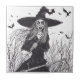 Scary Witch and Black Bats Ceramic Tile