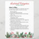 Need to spice up Game Night this Christmas? How about a themed category list that can be used with your favorite game or separately? Scattered Categories invites a little more fun into game night by incorporating new themes and styles. How to Play: This game can be played in combination with other popular category games using the same rules. Picking a Letter: 1. Use a random letter generator. 2. Spell out a Christmas related word like Angel, Bow, or Joy. 3. Use the initials of your host. Playing the Game: 1. Decide which list you will play first. 2. Set a timer. Three (3) minutes is the suggested playtime for 12 questions. 3. Write an answer for as many questions as you can during the time frame. 4. Times up! Compare answers. 5. For each unique answer, score one point. If you share an answer with someone else, everyone who shares the answer does not get a point. 6. Player with the highest score at the end of the game wins.