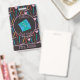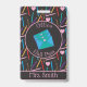 A personalized office hall pass badge with the illustrations of some colored pencils in the background and a stack of envelopes . Choose if you want an attachment (lanyard or metal clip or none). Check out collection to see the entire series .