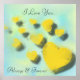 The Scattered Hearts Poster features yellow hearts scattered on a water color background, with the text "I love you...always & forever." Customize the text as desired. Makes a great accent piece in almost any room--also makes a great gift!