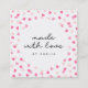 This sweet business card features scattered hearts confetti in different shades of pink with the words "Made With Love" against a white background on the front and pink background on the back. This business card is ideal for crafters and makers of handmade goods, like artists, knitters, dressmakers, etc who want a way to let the people they meet in real life know how to find them and their work/portfolio online and on social media. This versatile card can also be used as a product tag for your products.