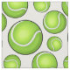 A white fabric featuring a smattering of tennis balls of various sizes for your creative needs.