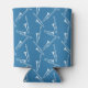 Trombone themed can cooler with white trombones on a blue background.
