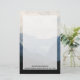 Stationery with a photograph of beautiful mountains, cloudy sky, and rolling hills filled with trees in the foreground. Gray blue color scheme.