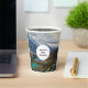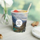 Paper cups with a beautiful nature photograph. Featuring snow capped alpine mountains and tranquil ponds nestled inside the valley of these majestic mountains.