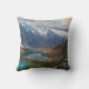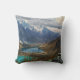 A pillow with a beautiful nature photograph. Featuring snow capped alpine mountains and tranquil ponds nestled inside the valley of these majestic mountains.