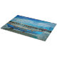 Glass cutting board with scenic photograph of Atlantic City Boardwalk in New Jersey from a shoreline view.