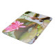 A beautiful scene of a frog surround by pretty pink flowered lily pads, on this wonderful bath mat.