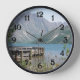 I received this as a birthday gift from my husband to replace a clock that had broken. It was perfect, pictures of my sweet family to see at every hour of the day. The size of the pictures looks nice for the size of the clock and I love looking at it! The only downside is there is no cover for the battery on the back, which makes me nervous having little kids running around the house, but an easy fix with some tape. The printing turned out clear, considering they were all cell phone pictures. Some of them look slightly grainy upon getting close up. But so nice overall!